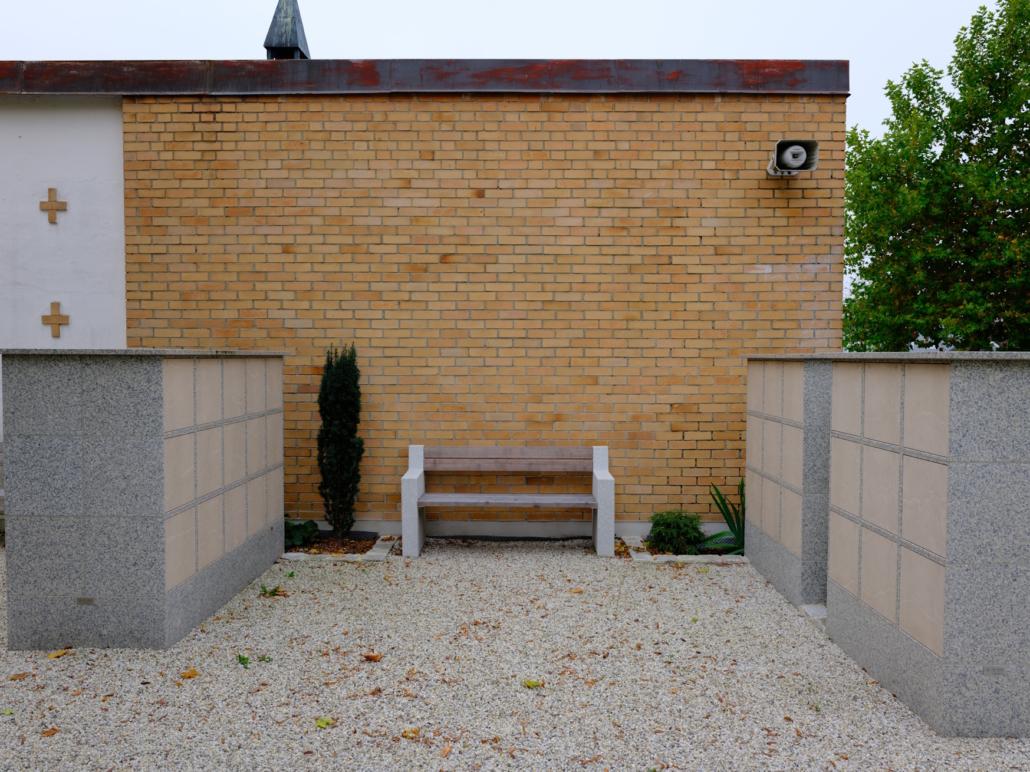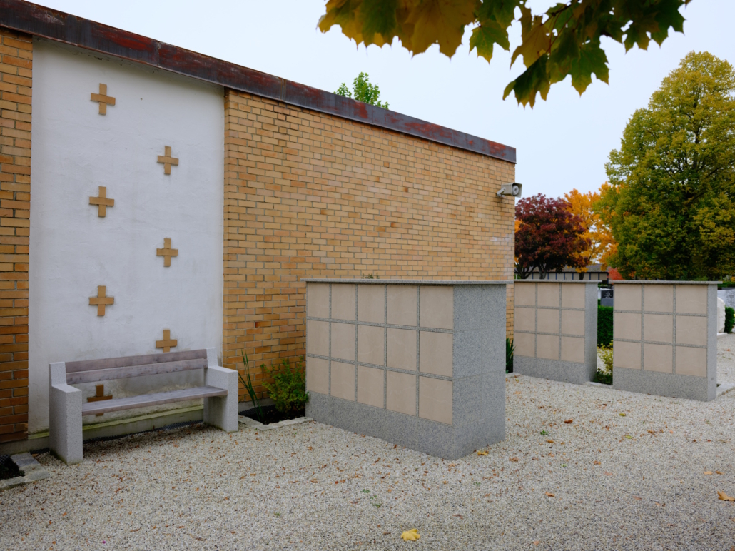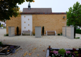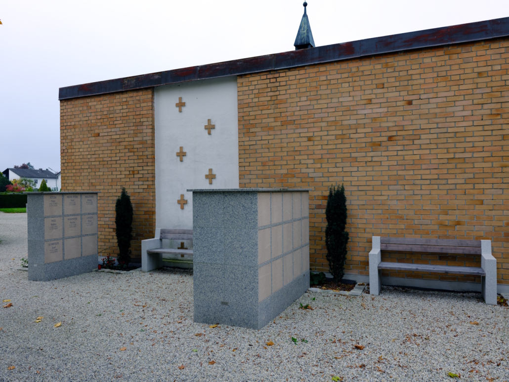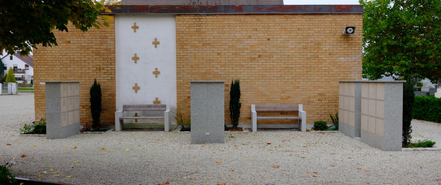 die Auswahl der Materialien nimmt Bezug auf die Aussegnungshalle,
