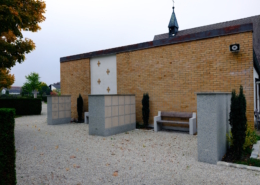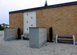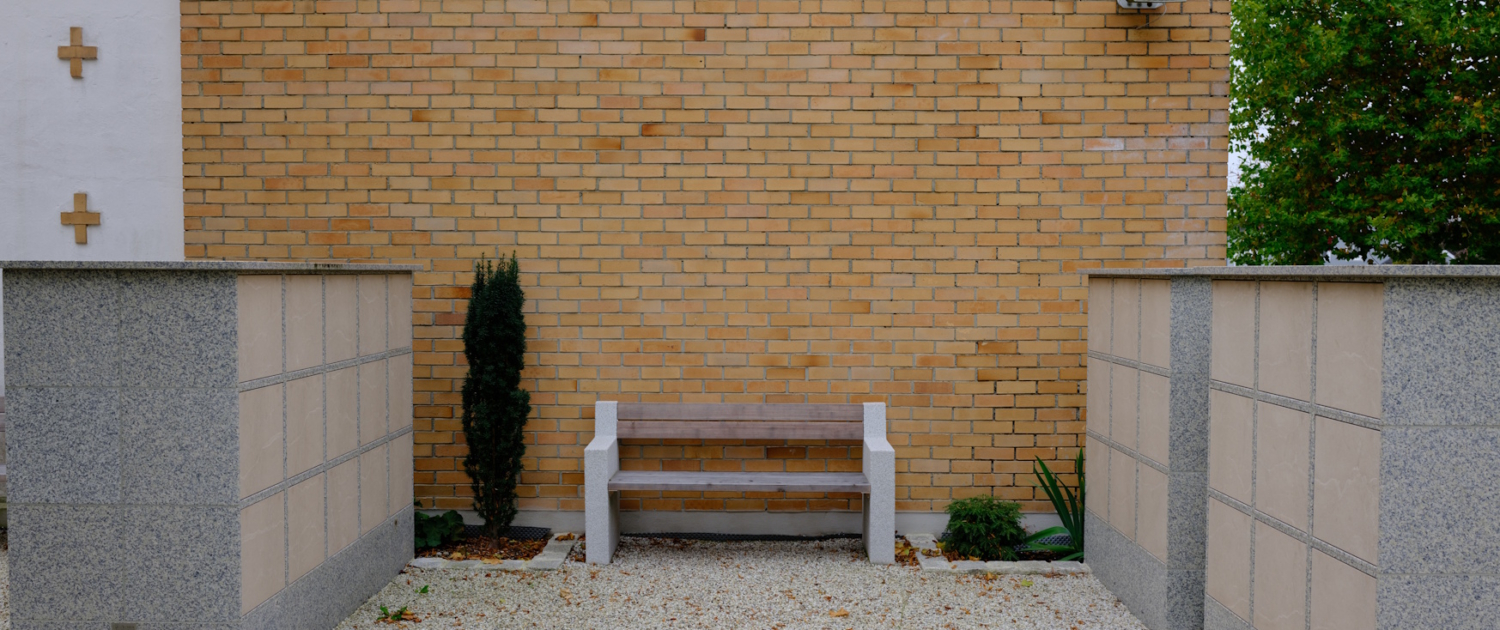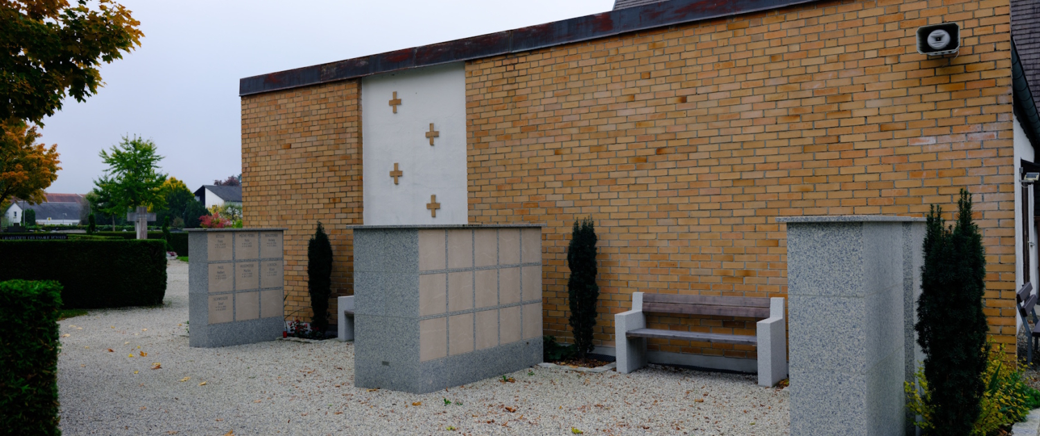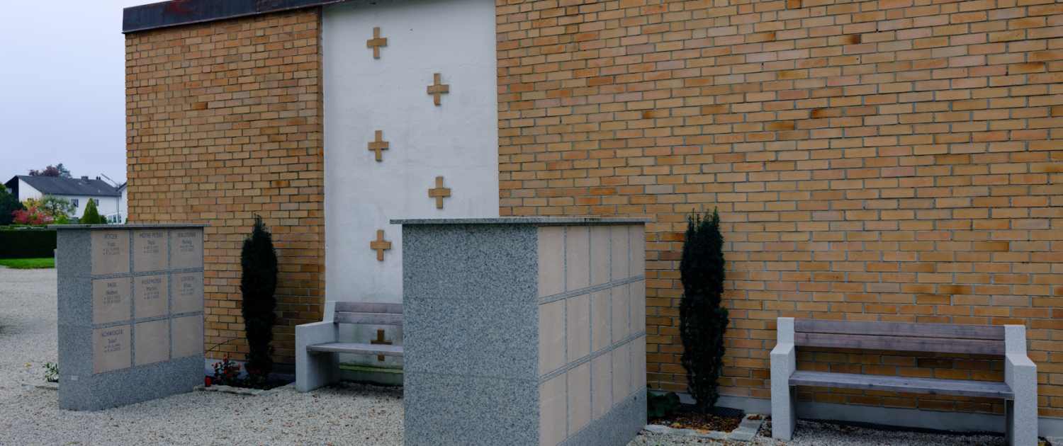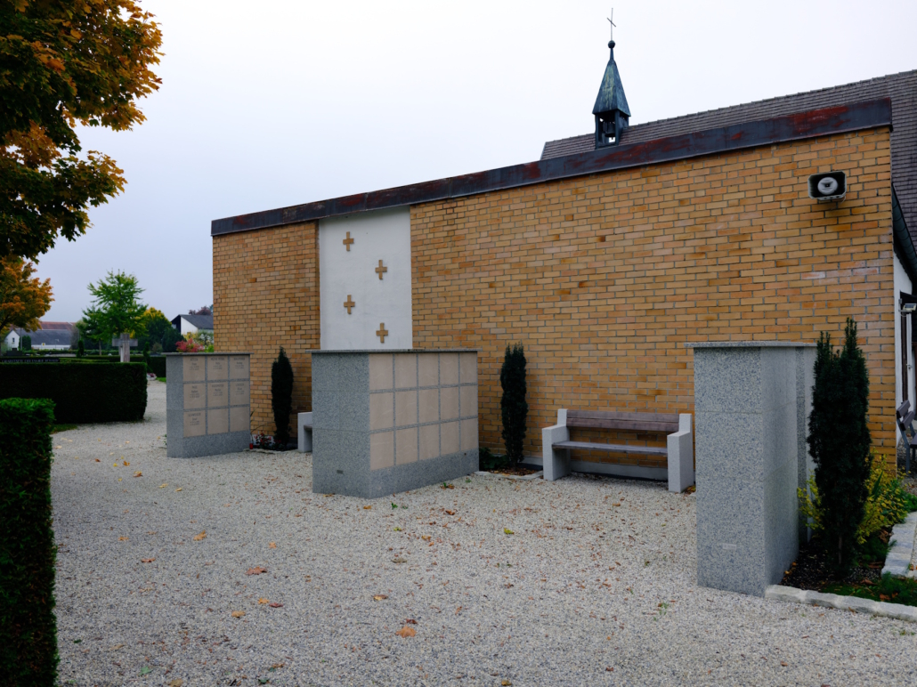 die Auswahl der Materialien nimmt Bezug auf die Aussegnungshalle,